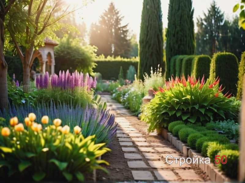 - Создайте композиции, учитывая высоту и форму растений.